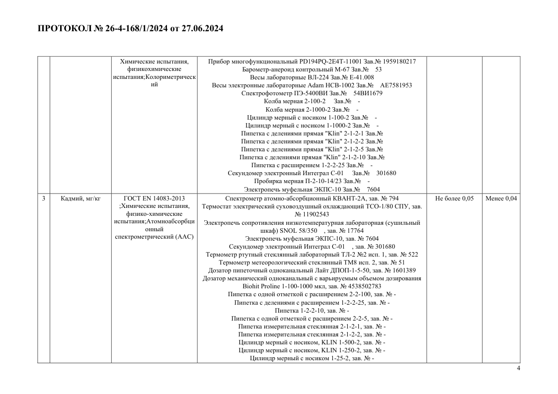 Протокола испытаний № 26-4-168.1.2024 от 27.06.2024 года, выданного Испытательным центром Общества с ограниченной ответственностью "Испытательным Центром Вектор" (уникальный номер записи об аккредитации в реестре аккредитованных лиц RA.RU.21ОМ79)