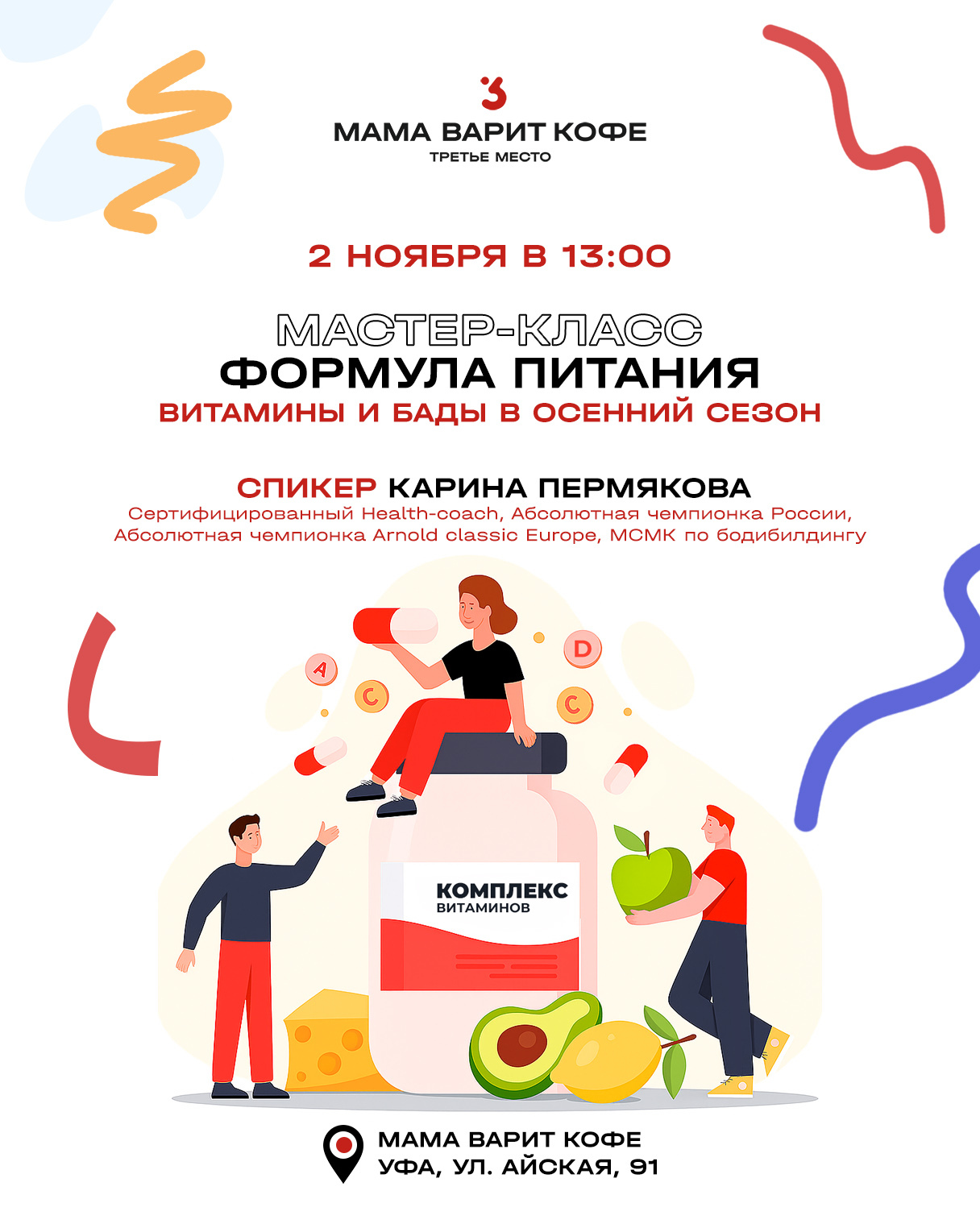 Приглашаем вас на встречу с сертифицированным Health- coach Кариной Пермяковой. Темой мастер-класса станет формула питания, эксперт расскажет, как поддерживать витаминный баланс в осенний сезон и как правильно включать в рацион БАДы.